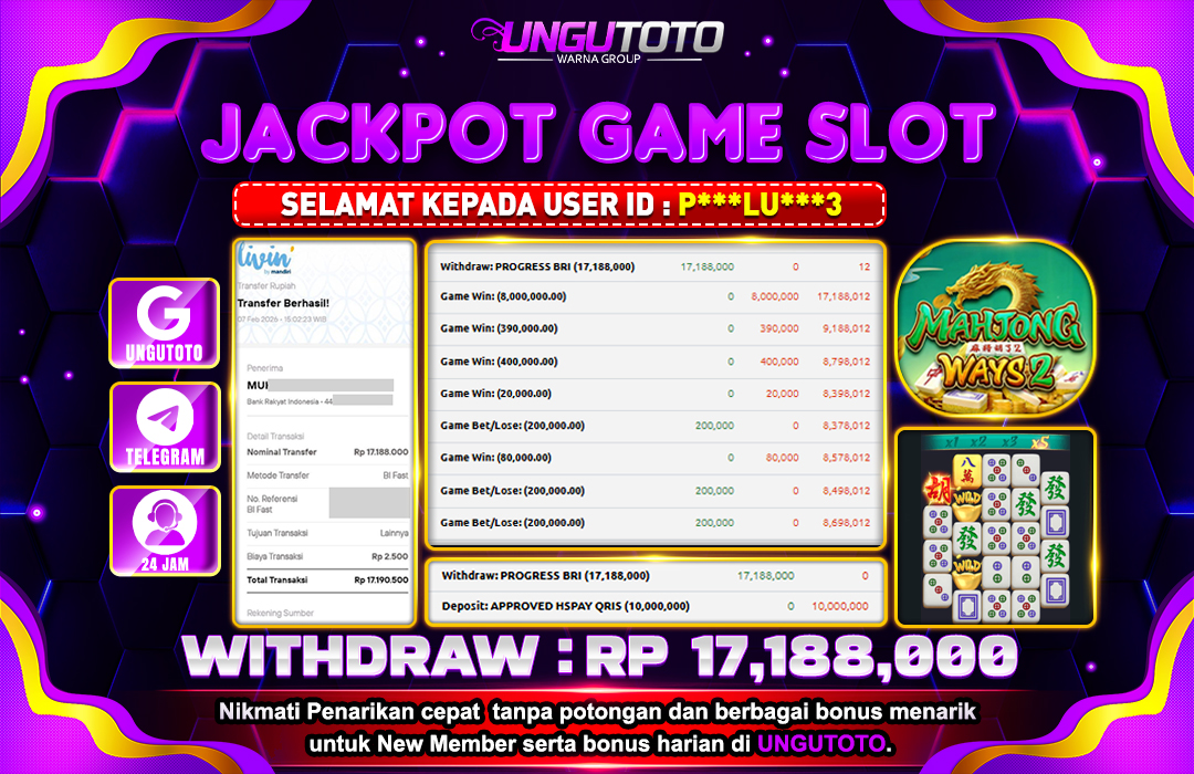 Selamat Kepada Member UNGUTOTO P⭑⭑⭑***��⭑⭑3 Telah Jackpot Di MAHJONG WAYS 2