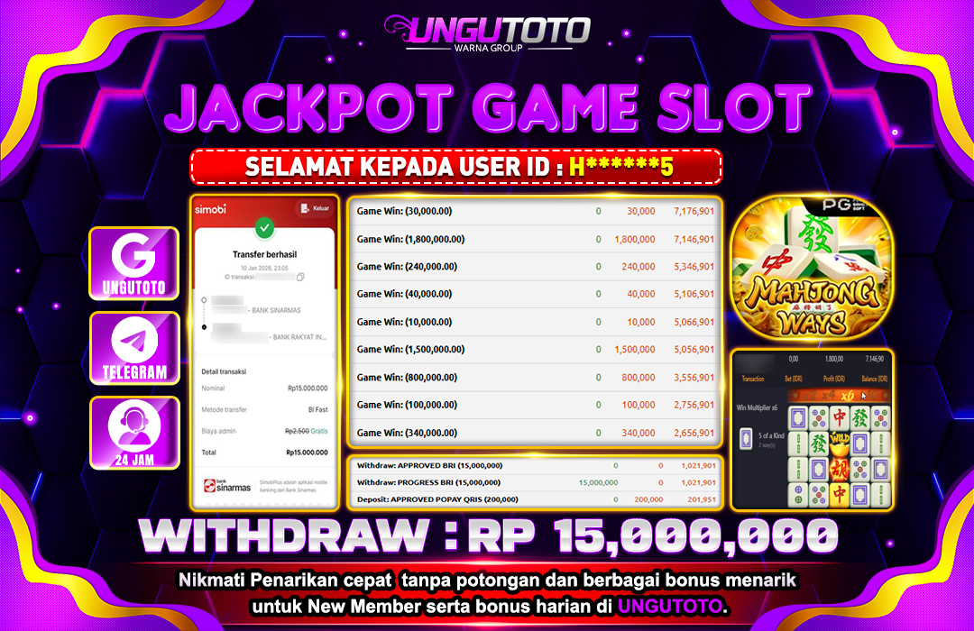 UNGUTOTO JACKPOT MAHJONG WAYS Rp.15.000.000 LUNAS
