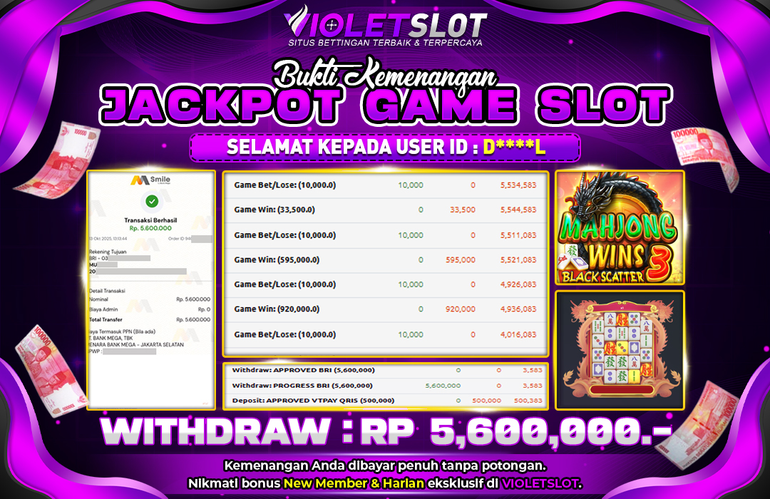 🎉 Selamat untuk USER ID: L****4 yang sukses membawa pulang Rp.Rp.6.000.000 dari permainan MAHJONG WAYS! 💸