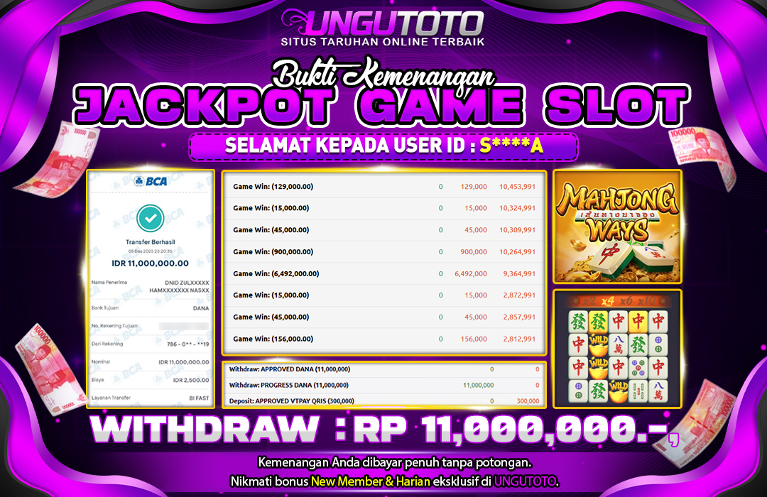 UNGUTOTO JACKPOT MAHJONG WAYS Rp.11.000.000 LUNAS