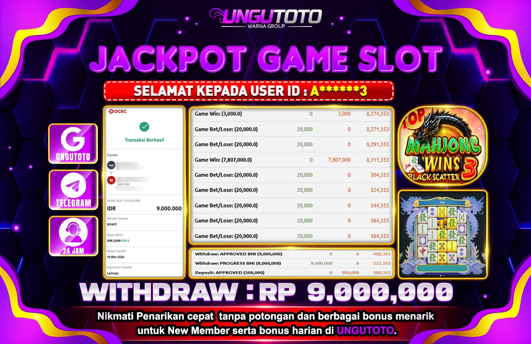 UNGUTOTO JACKPOT MAHJONG WINS 3 BLACK SCATTER Rp.9.000.000 LUNAS