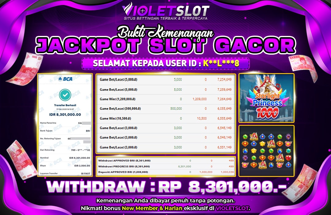 Selamat Kepada Member UNGUTOTO K******8 Telah Jackpot Di STARLIGHT PRINCESS 1000