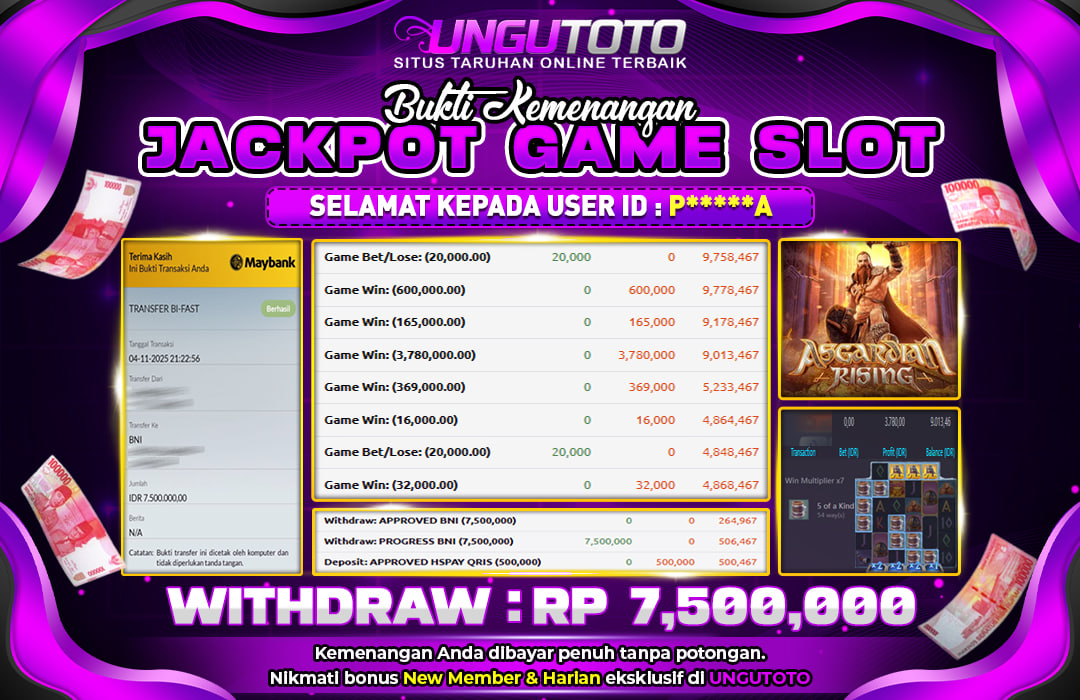 UNGUTOTO JACKPOT ASGARDIAN RISING Rp.7.500.000 LUNAS