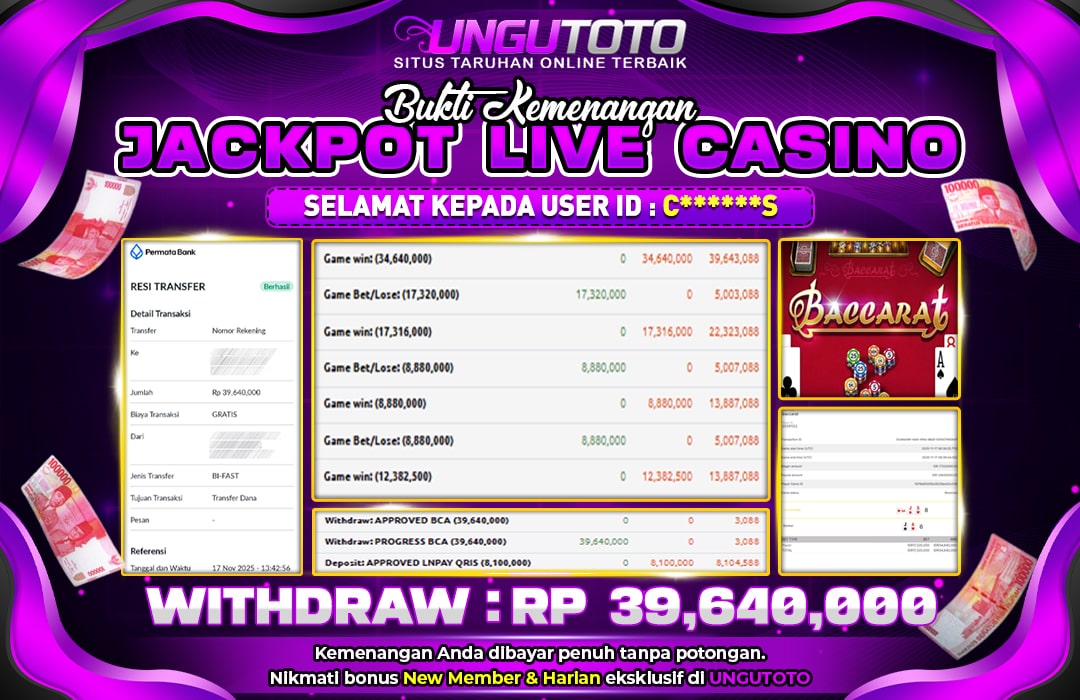 UNGUTOTO JACKPOT BACCARAT Rp.39.640.000 LUNAS