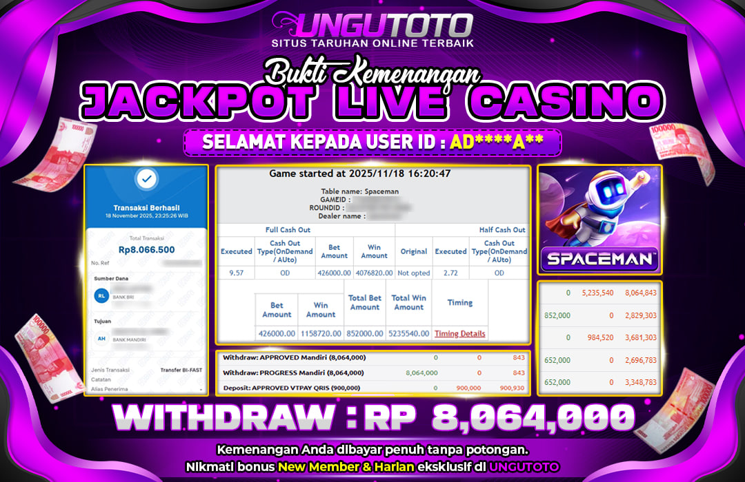 Selamat Kepada Member UNGUTOTO ADâ­‘â­‘***Aâ­‘â­‘ Telah Jackpot Di SPACEMAN