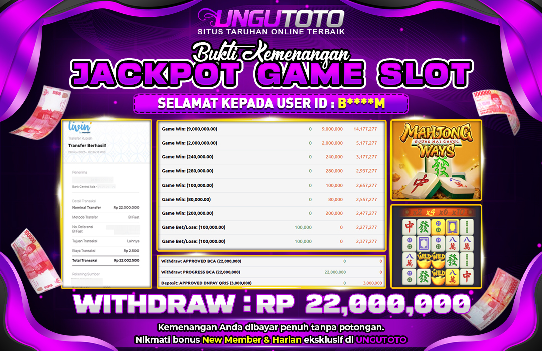 UNGUTOTO JACKPOT MAHJONG WAYS Rp.22.000.000 LUNAS