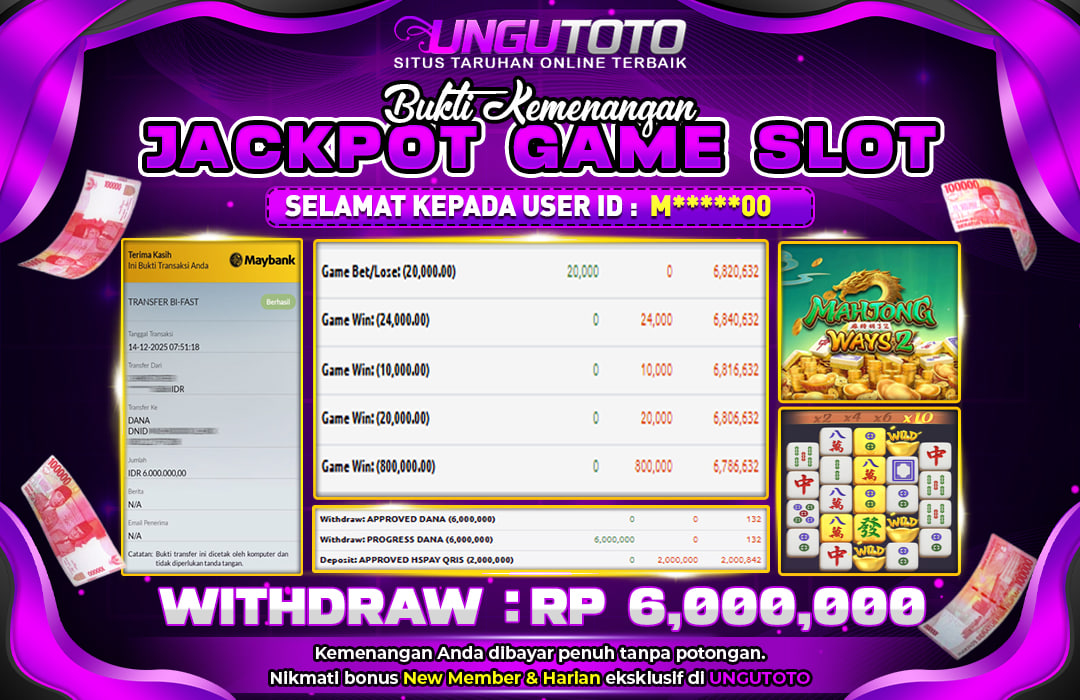 UNGUTOTO JACKPOT MAHJONG WAYS2 Rp.6.000.000 LUNAS