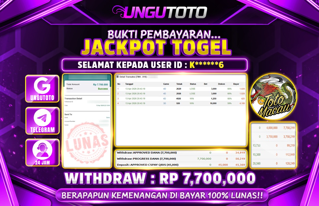 UNGUTOTO JACKPOT TOTO MACAU Rp.7.700.000 LUNAS