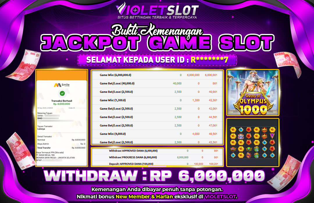 UNGUTOTO JACKPOT Gates of Olympus 1000 Rp.6.000.000 LUNAS