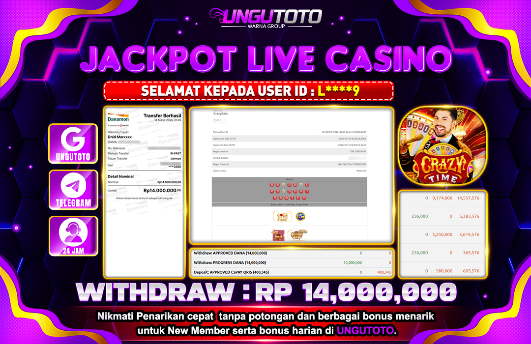 UNGUTOTO JACKPOT CRAZY TIME Rp.14.000.000 LUNAS