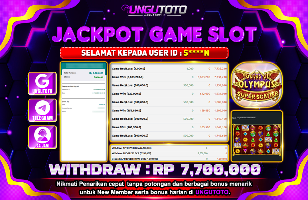 UNGUTOTO JACKPOT GATES OF OLYMPUS 1000 Rp.7.000.000 LUNAS