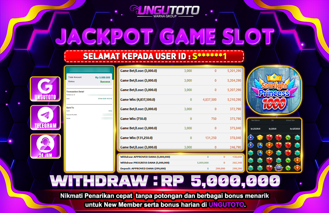 UNGUTOTO JACKPOT STARLIGHT PRINCESS 1000 Rp.5.000.000 LUNAS