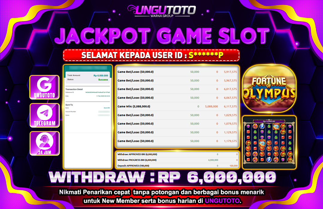 UNGUTOTO JACKPOT FORTUNE OF OLYMPUS Rp.6.000.000 LUNAS