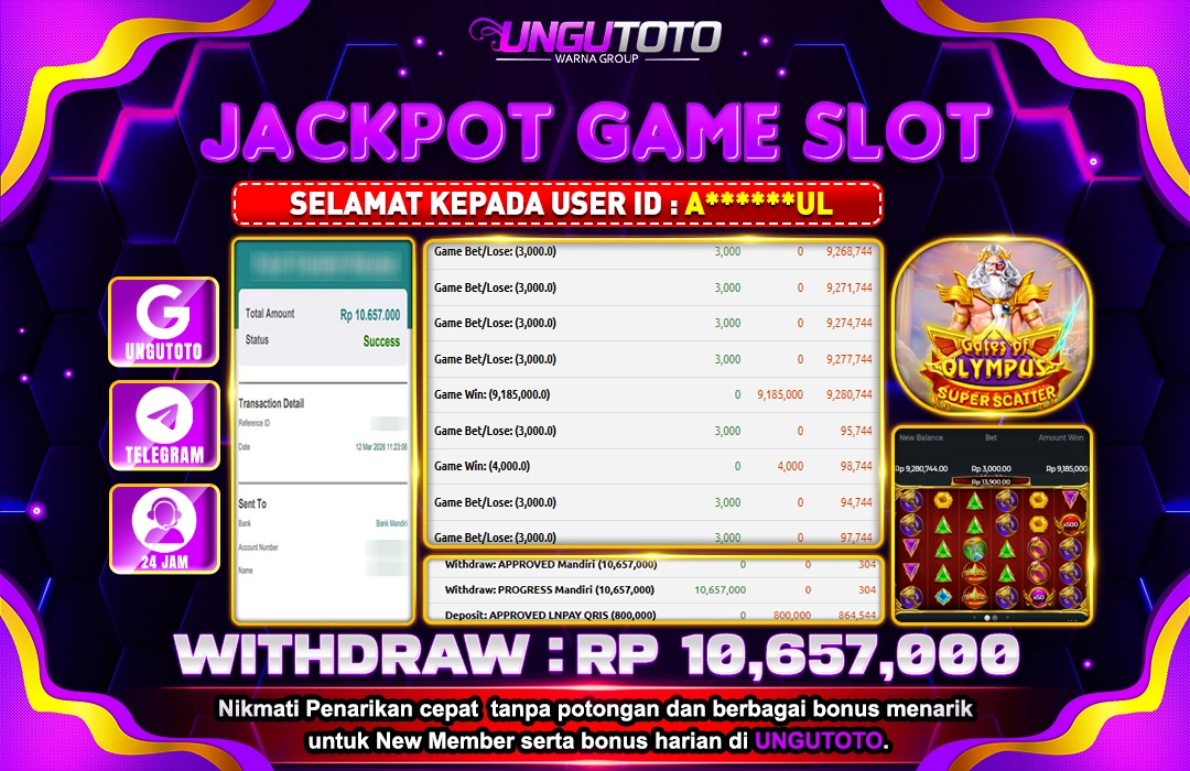 Selamat Kepada Member UNGUTOTO K*****5 Telah Jackpot Di GATES OF OLYMPUS 1000