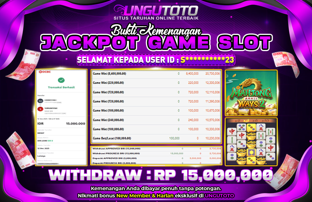 UNGUTOTO JACKPOT MAHJONG WAYS2 Rp.15.000.000 LUNAS