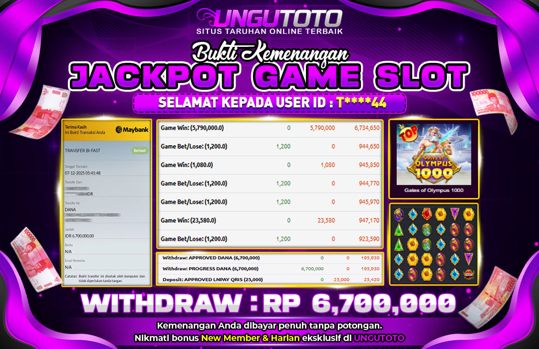 UNGUTOTO JACKPOT GATES OF OLYMPUS 1000 Rp.6.700.000 LUNAS