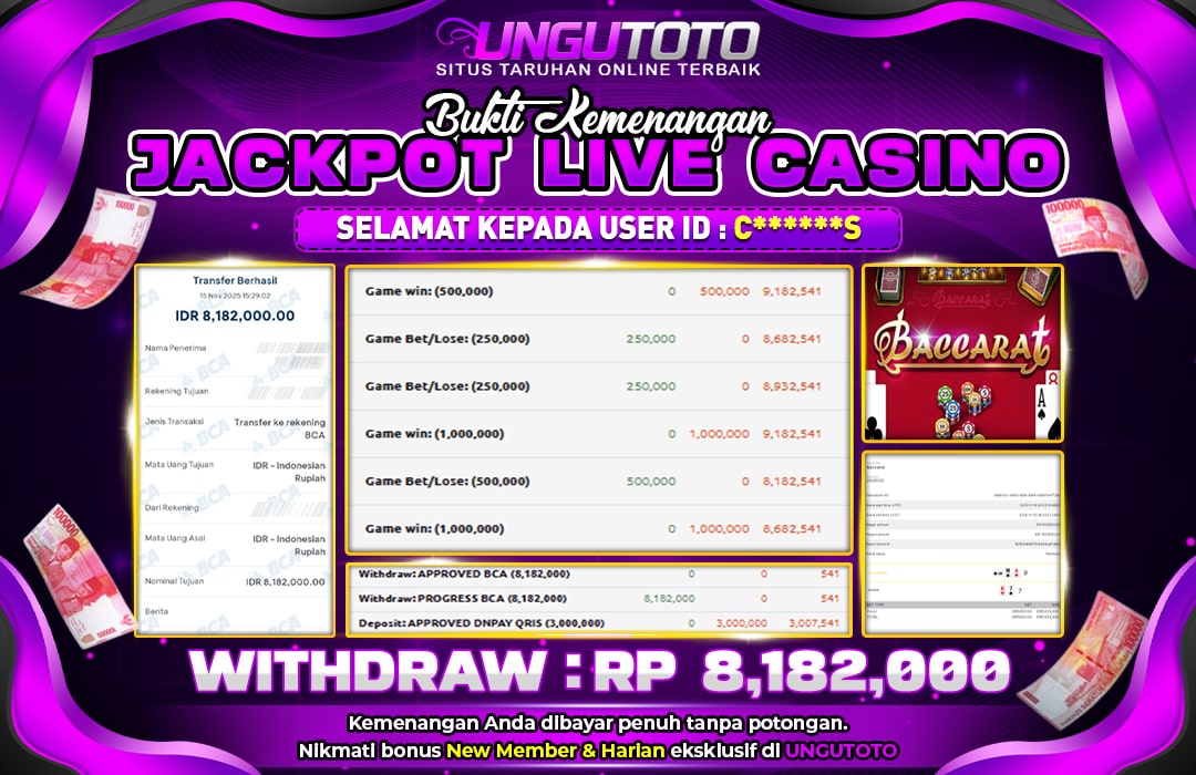 UNGUTOTO JACKPOT BACCARAT Rp.8.182.000 LUNAS