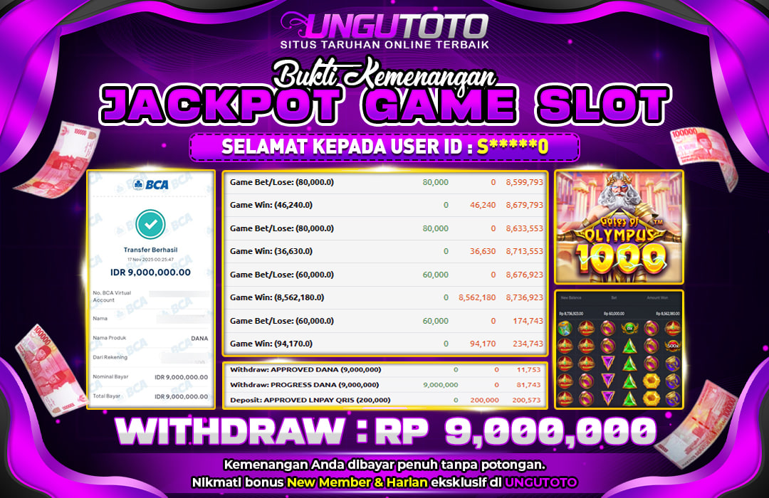 UNGUTOTO JACKPOT GATES OF OLYMPUS 1000 Rp.9.000.000 LUNAS