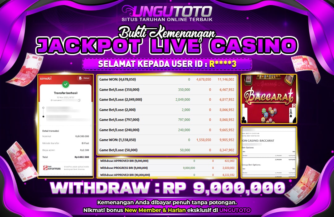 UNGUTOTO JACKPOT BACARRAT Rp.9.000.000 LUNAS