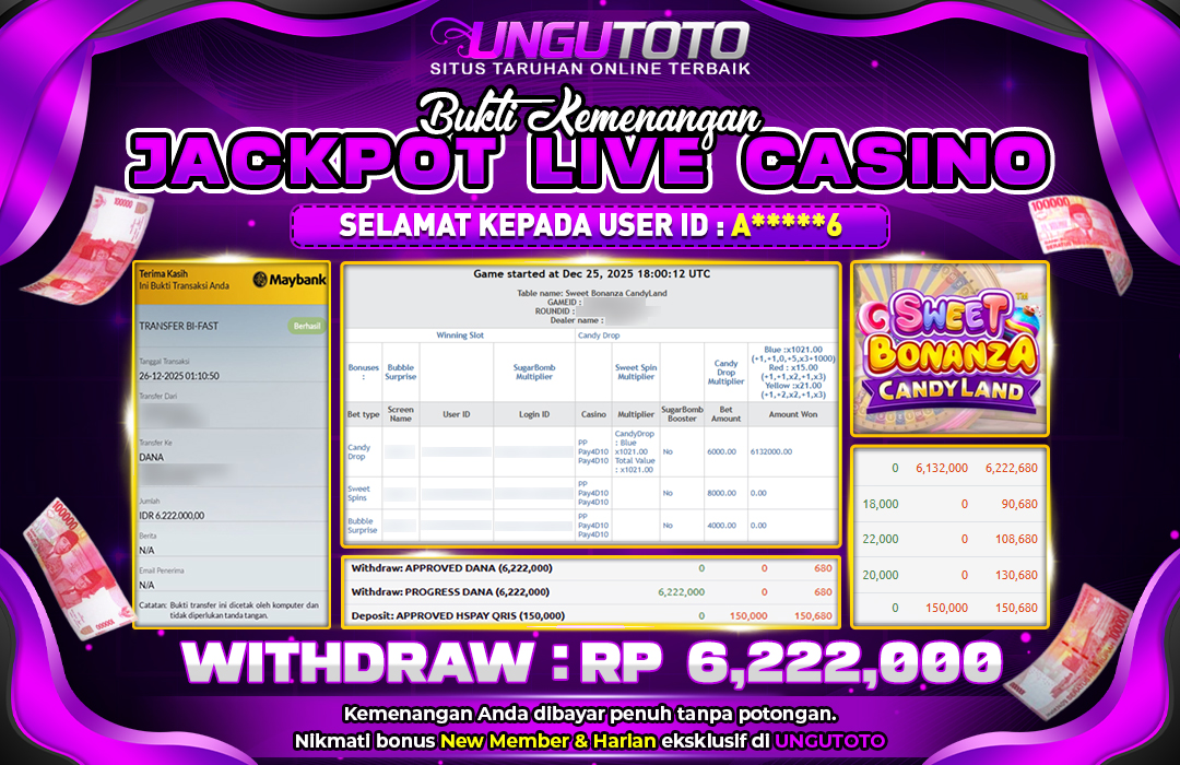 UNGUTOTO JACKPOT SWEET BONANZA CANDYLAND Rp.6.222.000 LUNAS
