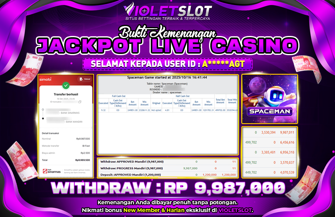 UNGUTOTO JACKPOT LIVE CASINO - PRAGMATIC PLAY SPACEMAN Rp.9.987.000 LUNAS