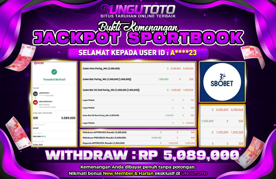 UNGUTOTO JACKPOT SBOBET Rp.5.089.000 LUNAS