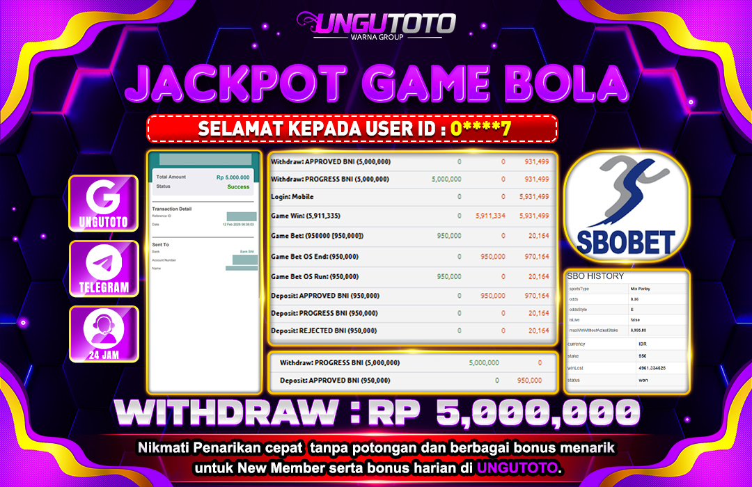 Sudah banyak yang buktiin sendiri—UNGUTOTO konsisten bayar semua kemenangan member, berapapun nominalnya. Transparan, aman, dan dijamin tuntas. 💯🔒