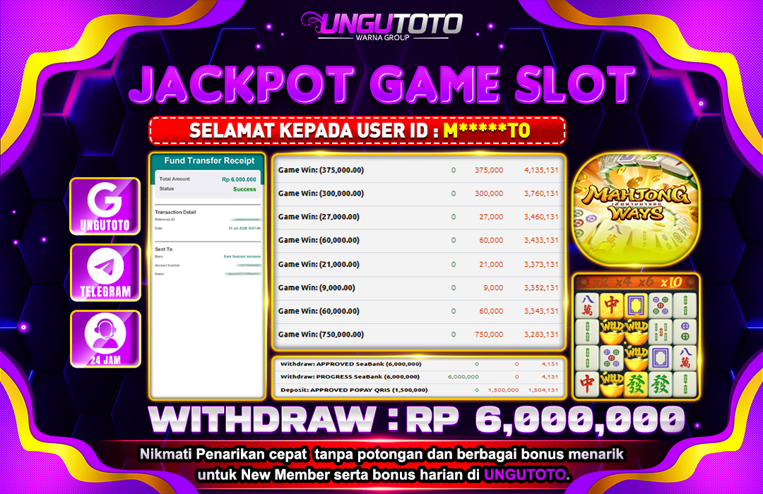 Selamat Kepada Member UNGUTOTO M*******6 Telah Jackpot Di MAHJONG WAYS