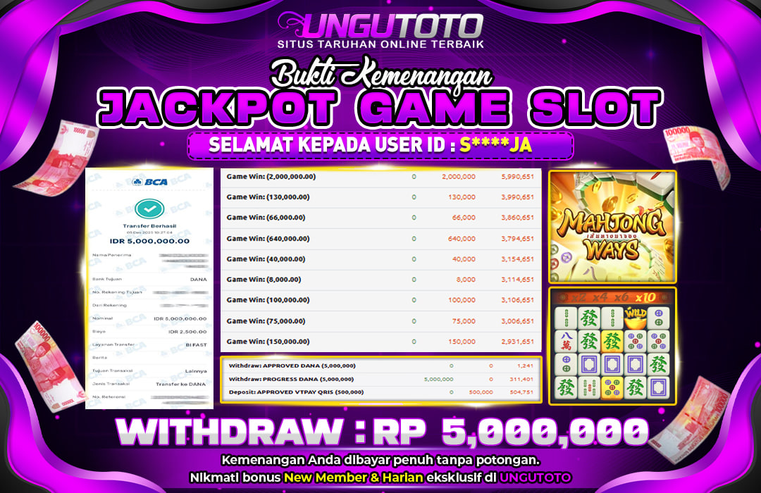 UNGUTOTO JACKPOT MAHJONG WAYS Rp.5.000.000 LUNAS
