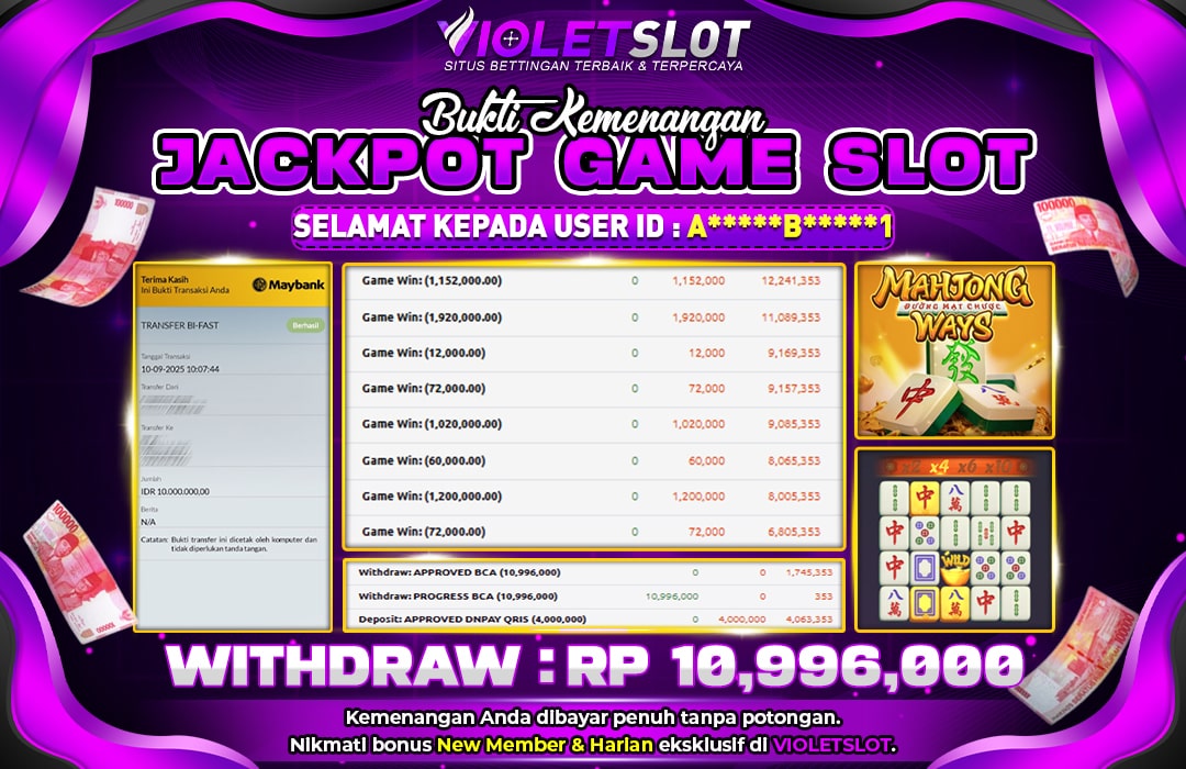 🎉 Selamat untuk USER ID: D****1 yang sukses membawa pulang Rp.Rp.7.000.000 dari permainan MAHJONG WAYS ! 💸