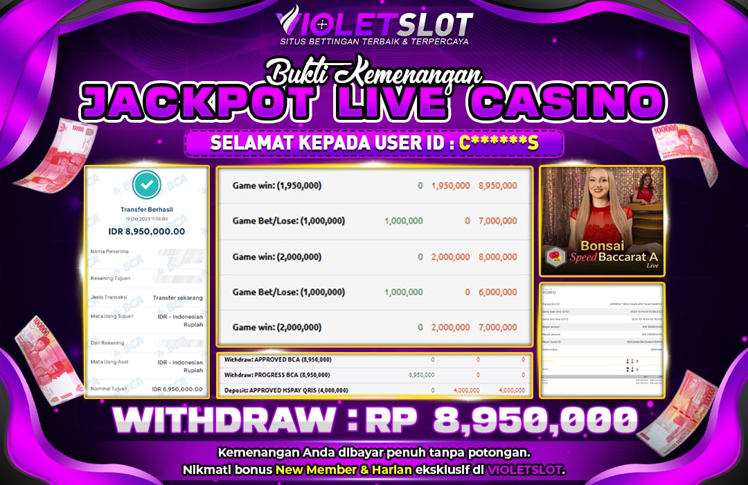 UNGUTOTO JACKPOT LIVE CASINO BACCARAT Rp.8.950.000 LUNAS