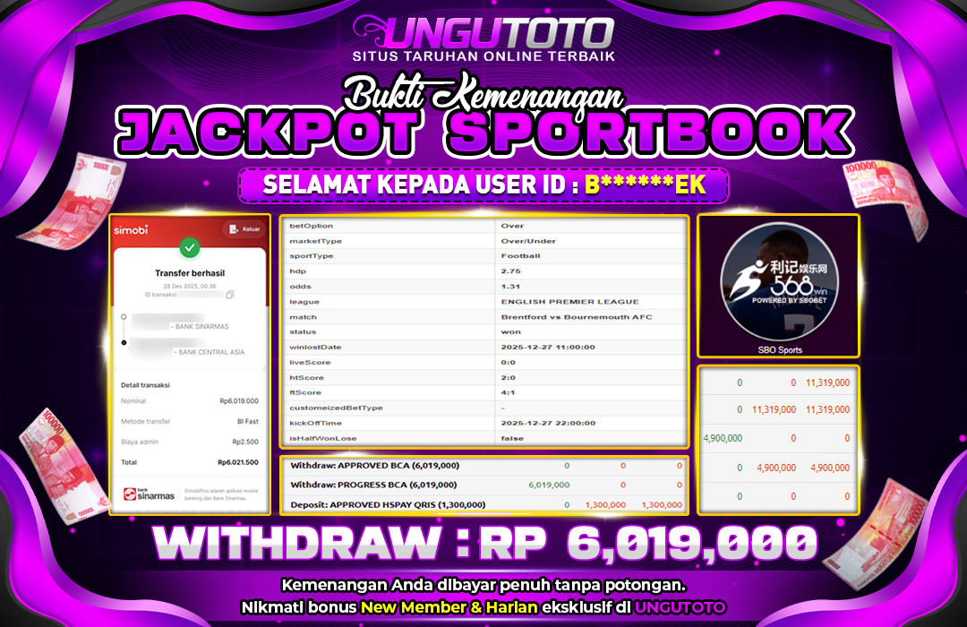 UNGUTOTO JACKPOT SBO BET Rp.6.019.000 LUNAS