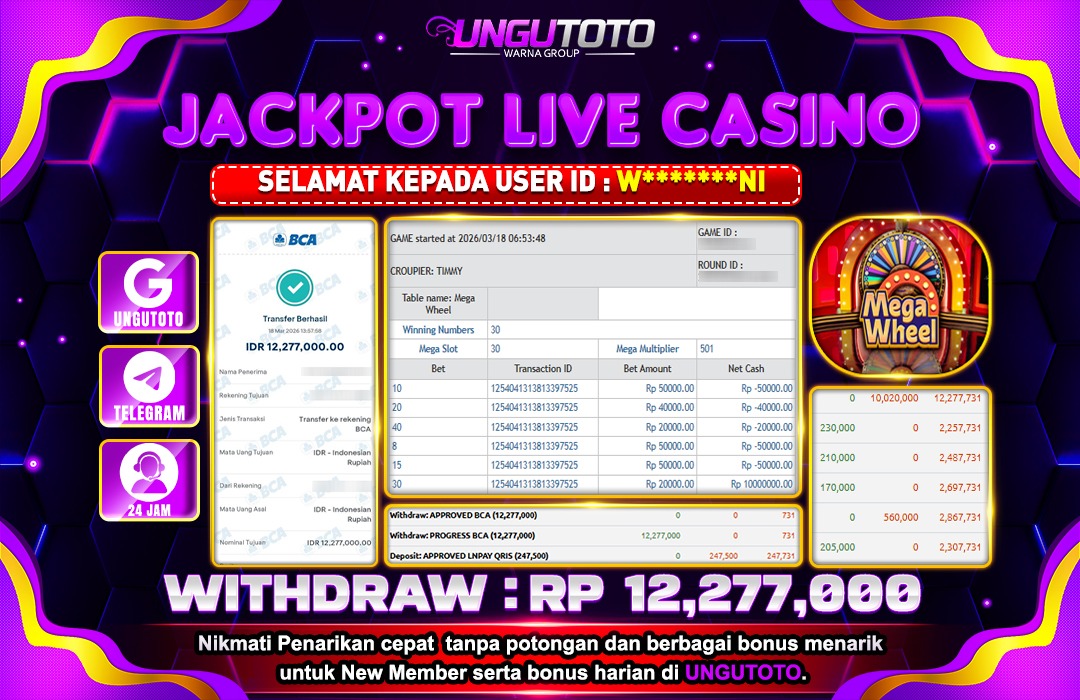 UNGUTOTO JACKPOT LIVE CASINO MEGA WHEEL Rp.12.277.000 LUNAS
