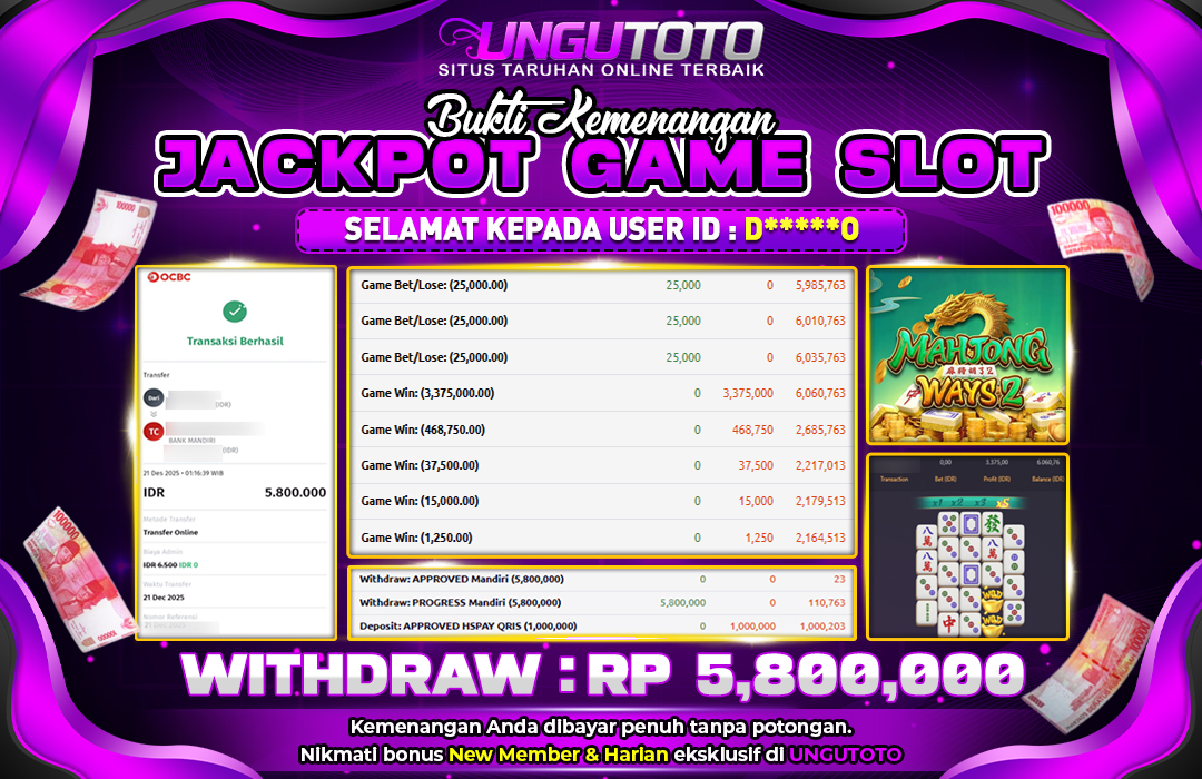 Selamat Kepada Member UNGUTOTO D**** Telah Jackpot Di MAHJONG WAYS 2