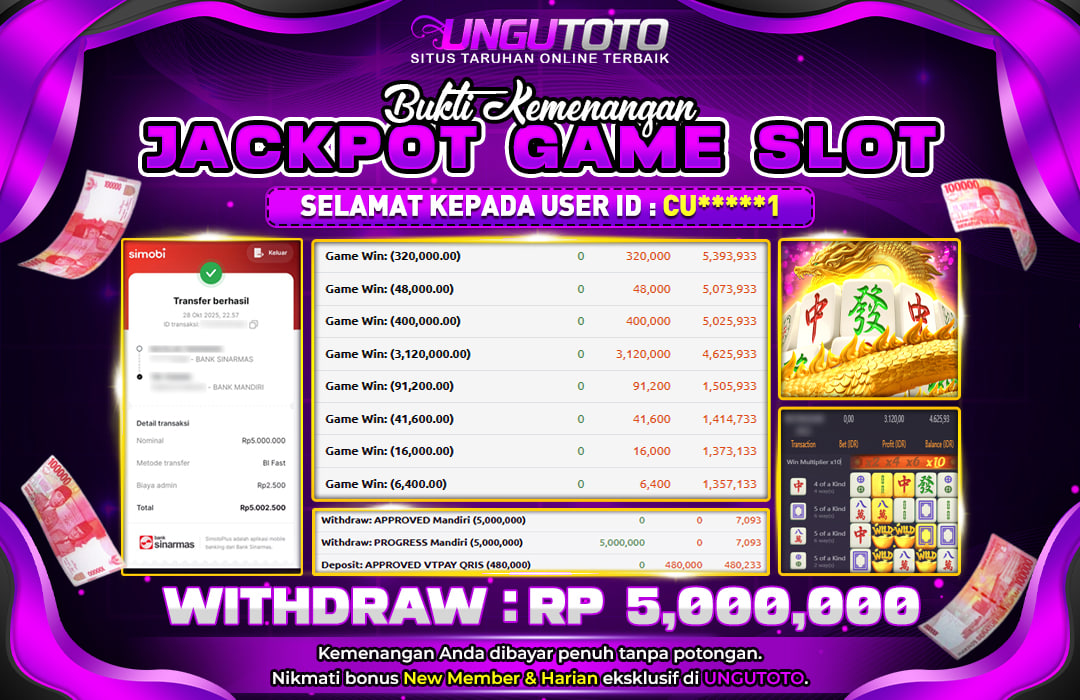 Selamat Kepada Member UNGUTOTO CU⭑⭑***⭑⭑1 Telah Jackpot Di MAHJONG WAYS